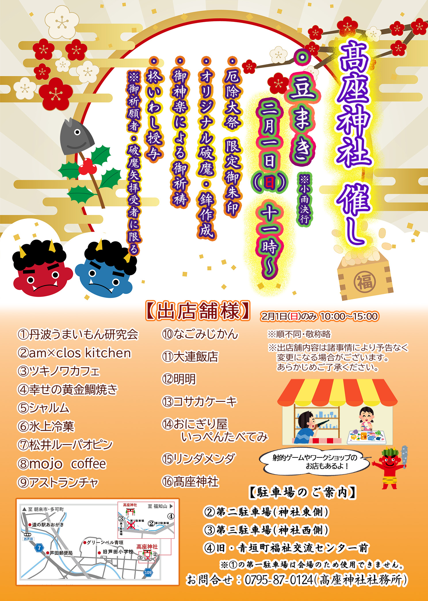 髙座神社では令和8年1月31日(土)~2月1日(日)にかけて、節分・厄除大祭を執り行います。